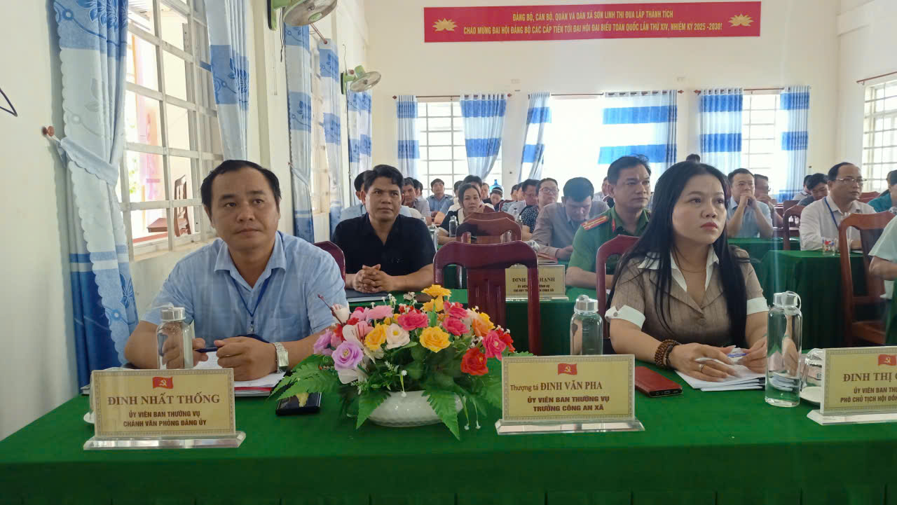 Tại điểm cầu UBND xã Sơn Linh, dự và chỉ đạo Hội nghị có đồng chí Bùi Đức Thọ – Bí thư Đảng ủy, Chủ tịch HĐND xã. Cùng tham dự có các đồng chí: Nguyễn Tấn Công – Phó Bí thư Thường trực Đảng ủy; đồng chí Sang Thị Minh Ngọc – Phó Bí thư, Chủ tịch UBND xã; Trưởng, Phó các cơ quan tham mưu giúp việc Đảng ủy, các Ban HĐND xã, các phòng thuộc UBND xã, Ủy ban MTTQ Việt Nam xã, các tổ chức Chính trị - Xã hội xã, Ban Giám hiệu các trường học, lãnh đạo các đơn vị y tế, Bí thư chi bộ, Trưởng thôn, Trưởng Ban công tác Mặt trận ở các thôn trên địa bàn xã.
