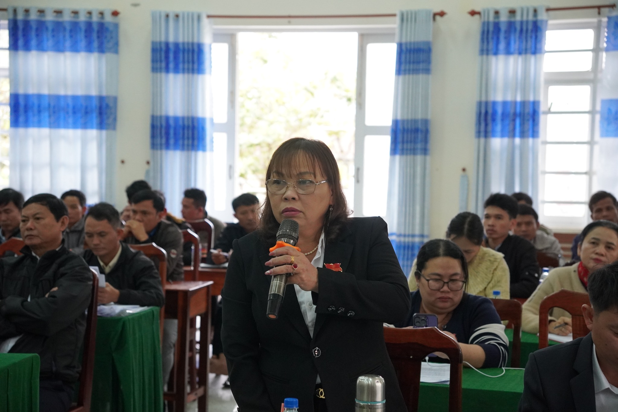 Đồng chí Sang Thị Minh Ngọc – Phó Bí thư Đảng ủy, Chủ tịch UBND xã phát biểu tại kỳ họp.