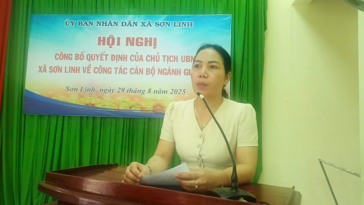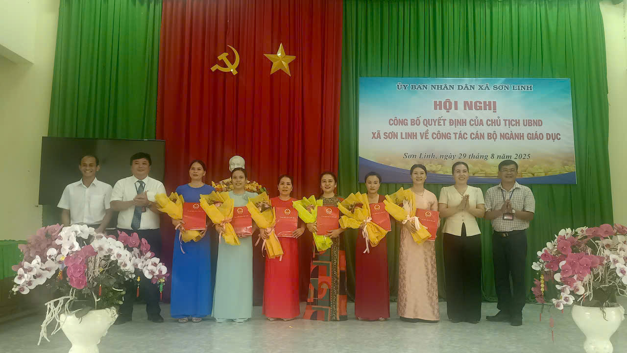 Chiều ngày 29/8/2025, tại Hội trường UBND xã Sơn Linh, UBND xã đã tổ chức Hội nghị công bố các quyết định bổ nhiệm người đứng đầu và cấp phó người đứng đầu các đơn vị giáo dục trên địa bàn sau khi sáp nhập đơn vị hành chính.
